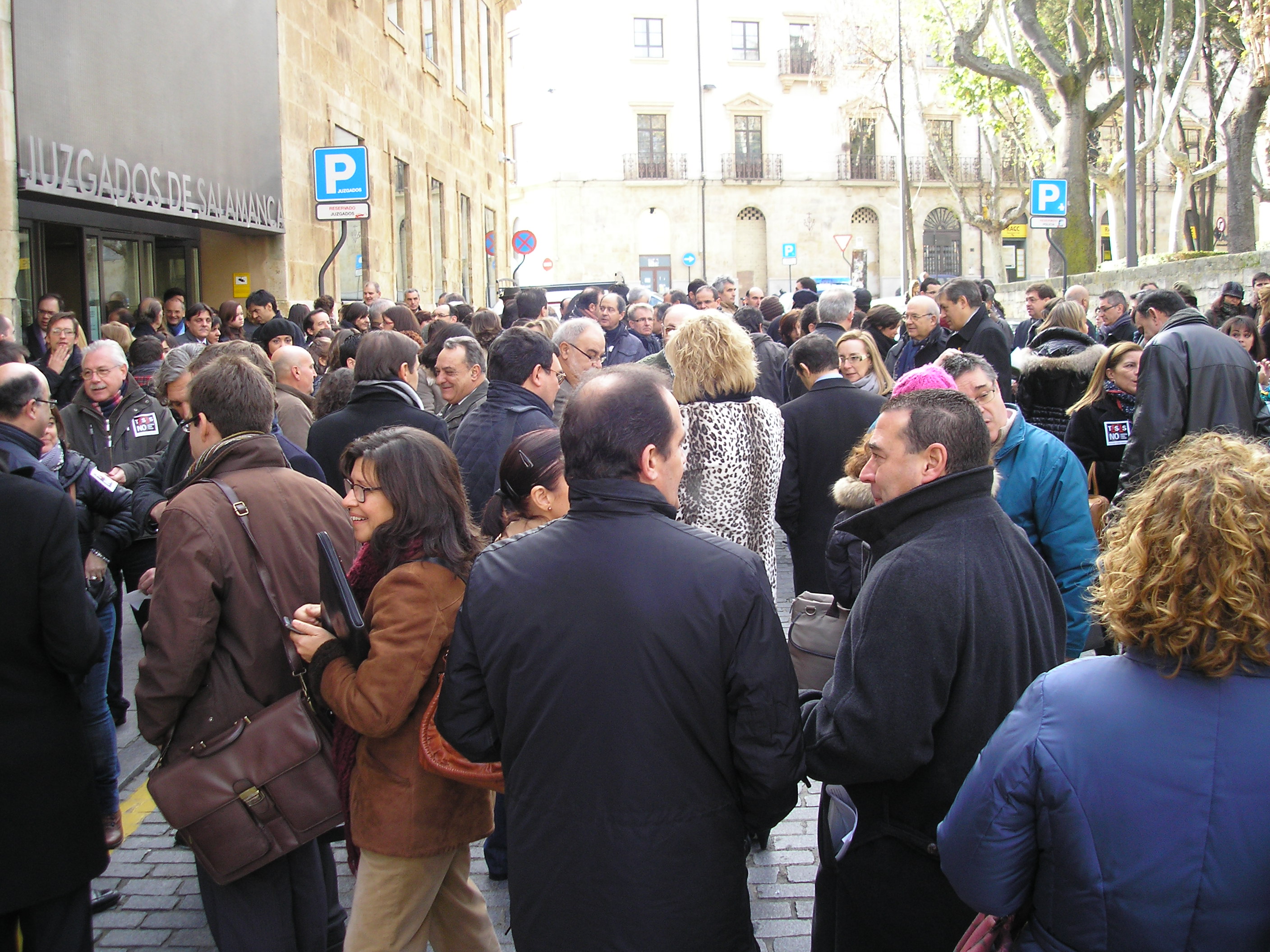 Aproximadamente el mismo número se dio cita en concentración de Valladolid, que se transformó en una manifestación que cortó la calle Angustias, en la que se ubican los juzgados y la Audiencia Provincial, mientras en la sede del Colegio se recogían firmas contra las tasas.