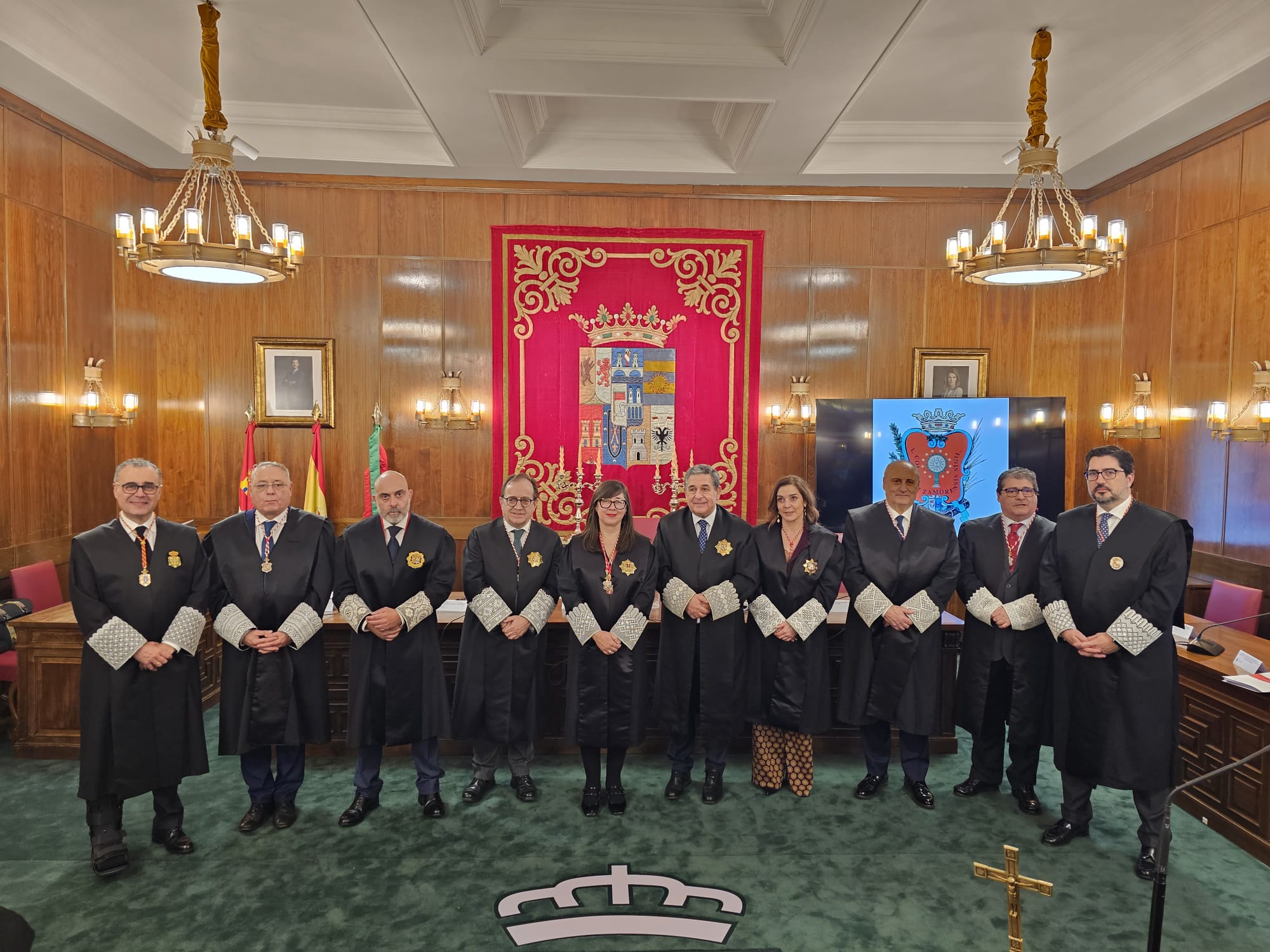 La ceremonia solemne, celebrada en el Salón de Plenos de la Diputación de Zamora, concentró algunos de los actos más significativos de la vida colegial, entre ellos la toma de posesión de los nuevos cargos de la Junta de Gobierno, la entrega de las insignias colegiales a los letrados que cumplen 50 y 25 años de ejercicio profesional, así como el acto de jura o promesa de los nuevos colegiados incorporados en 2025.